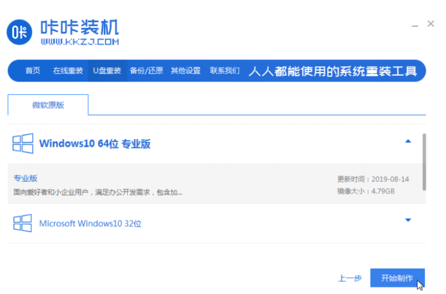 2..選擇你需要制作哪個系統(tǒng)版本,點擊開始制作。