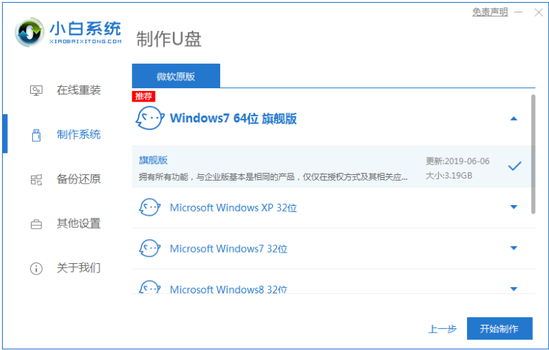 2、選擇我們自己想要安裝的系統(tǒng)半盤下載到U盤去。