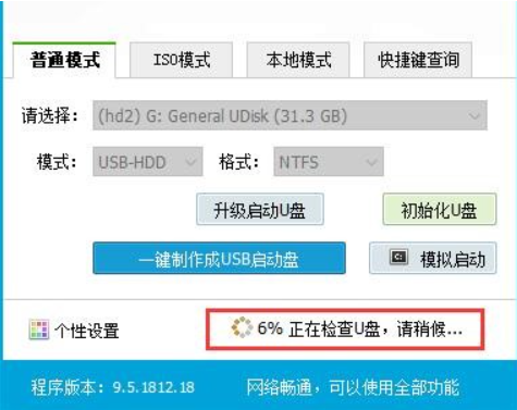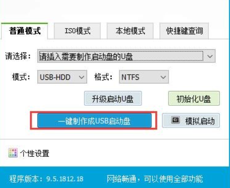 2、在普通模式下進(jìn)行選擇,依照默認(rèn)模式操作一鍵制作啟動(dòng)盤(pán);