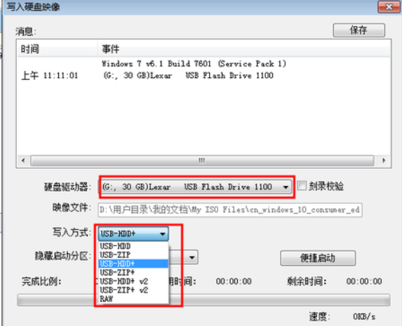 2、插入U(xiǎn)盤,寫入硬盤映像。