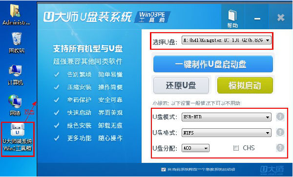 軟件版本:u大師u盤啟動軟件+1個8g以上的空白u盤