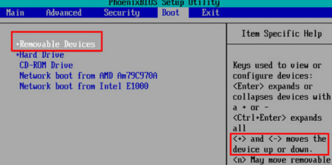 3.將“removeble device”移動(dòng)至最上面,按“+鍵”實(shí)現(xiàn)向上移動(dòng)。