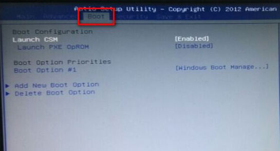 2、通過(guò)左右移動(dòng)找到“boot”菜單界面。