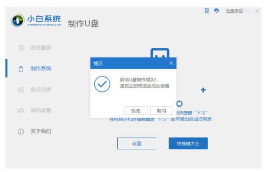 6.成功制作啟動(dòng)u盤(pán),可以點(diǎn)擊取消或預(yù)覽結(jié)果。