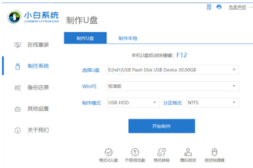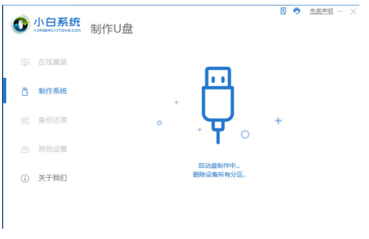 1、首先將U盤(pán)插入可以聯(lián)網(wǎng)的電腦,在電腦網(wǎng)上下載并運(yùn)行小白一鍵重裝系統(tǒng),然后單擊以開(kāi)始制作。