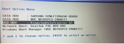 6、然后插入啟動(dòng)盤到電腦上,重啟電腦時(shí)按F12或FN+F12調(diào)出啟動(dòng)管理窗口界面,選擇USB HDD按回車進(jìn)入PE就可以使用u盤重裝系統(tǒng)啦。