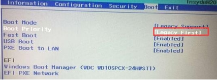 4、然后將【Boot Priority】設(shè)置成【Legacy First】,按下F10選擇yes。
