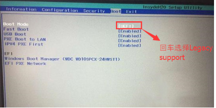 3、再切換到【Boot】選項(xiàng)下,將【Boot Mode】改成【Legacy Support】即可。