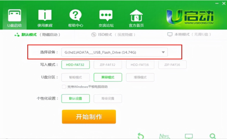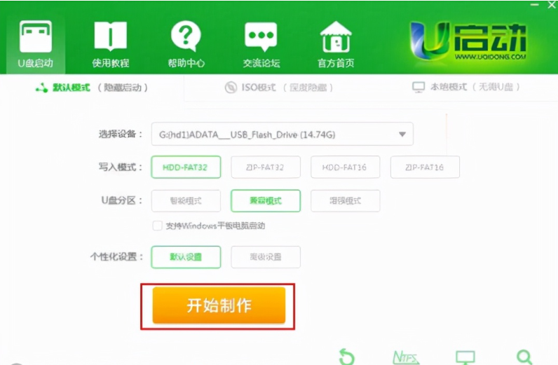 注意:關(guān)于寫入模式和U盤分區(qū),U啟動為您推薦的為較佳模式,若無特別需求,您無需做任何改動。