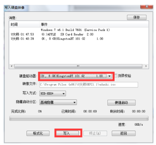 2、ISO制作完成之后就會(huì)彈出一個(gè)寫入硬盤映像窗口。