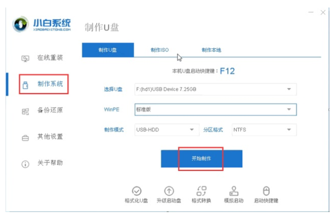 1、u盤啟動(dòng)盤怎么裝系統(tǒng)呢?首先準(zhǔn)備一個(gè)空白的8GU盤,打開電腦,下載和安裝好小白一鍵重裝軟件,點(diǎn)擊制作系統(tǒng)。