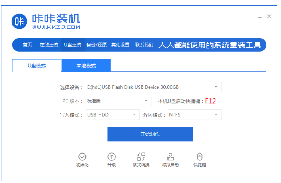 下載咔咔裝機(jī)軟件制作u盤安裝系統(tǒng)步驟: