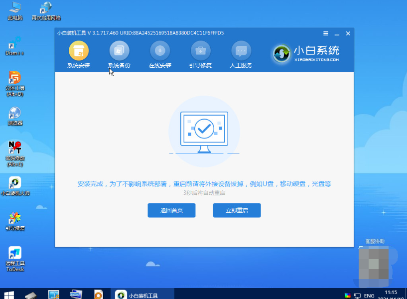 6、系統(tǒng)安裝完成后,點(diǎn)擊立即重啟電腦。