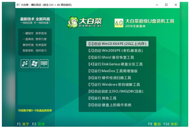 6、制作完成后,然后選擇模擬啟動測試,若能夠進入大白菜winpe主菜單,就已完成啦。