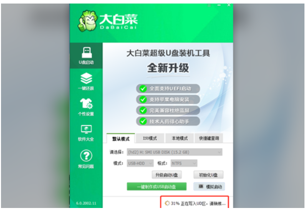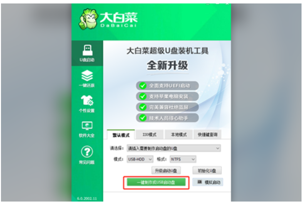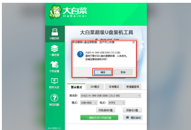 軟件版本:大白菜U盤啟動工具