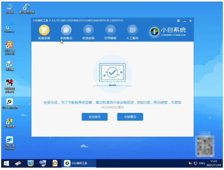 9.系統(tǒng)安裝完成后將U盤拔掉,點(diǎn)擊立即重啟。