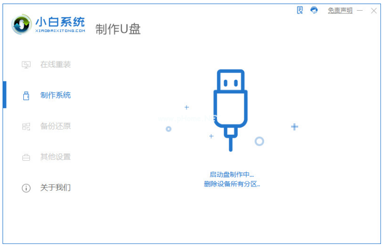 1、將U盤插入電腦,打開小白一鍵重裝系統(tǒng)開始制作;