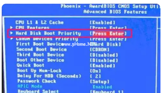 4.進(jìn)入后,找到HardDiskBootPriority,即優(yōu)先啟動硬盤,按Enter確認(rèn)。
