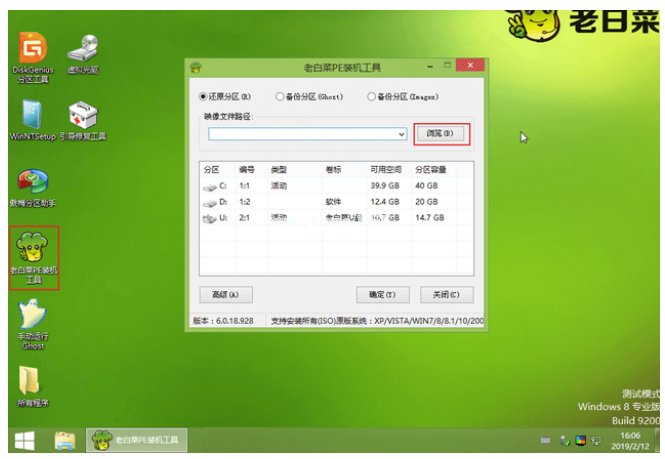 軟件版本:老白菜pe裝機(jī)工具v5.0+小白一鍵重裝系統(tǒng)v2290