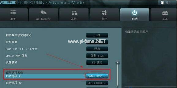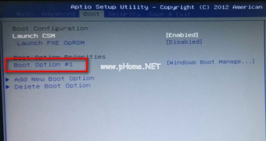 3、在“boot”界面中找到“boot option #1”。