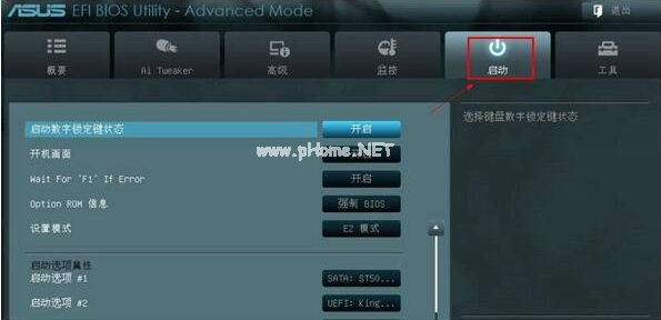 2、切換到啟動(dòng)選項(xiàng)節(jié)目,進(jìn)入之后即可看到啟動(dòng)菜單。