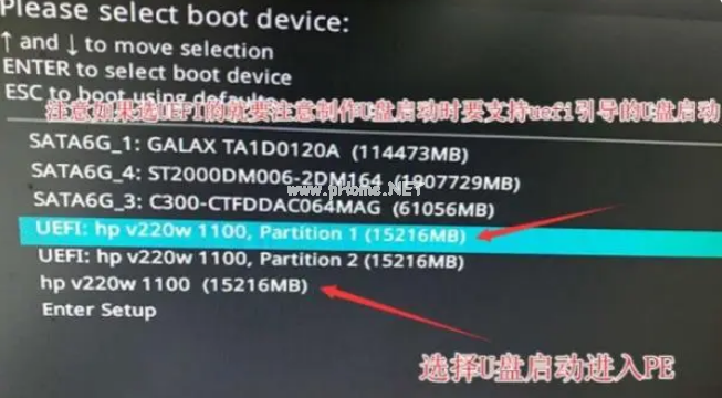 6、最后把u盤啟動盤插上,電腦重啟后按esc選擇識別u盤的啟動項(xiàng)選項(xiàng),回車確認(rèn)就可以了。