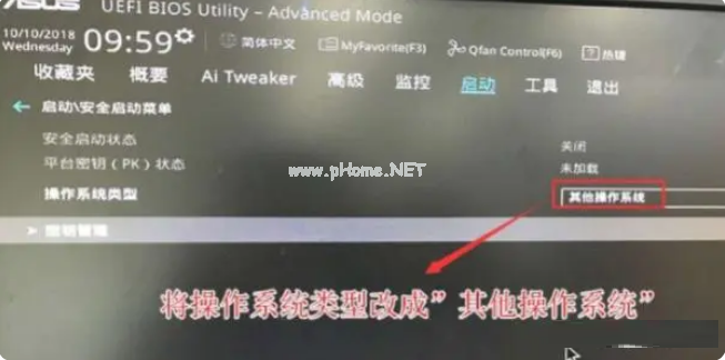 3、然后返回到安全啟動菜單選項(xiàng),然后將系統(tǒng)類型改成其它操作系統(tǒng)即可。