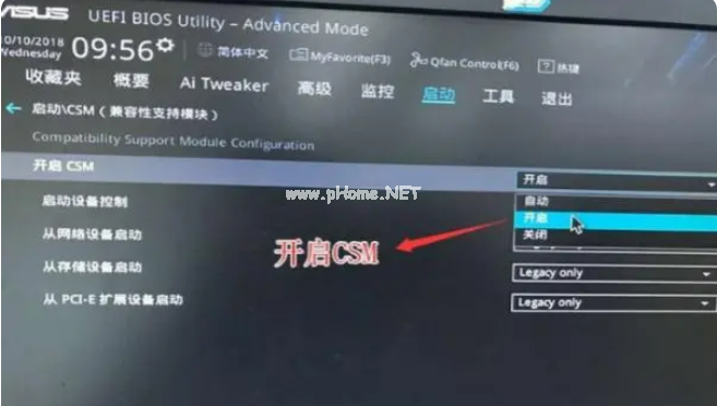 4、然后再啟動選項(xiàng)里,把csm由disabled改成enabled,接著把兼容模式打開來。