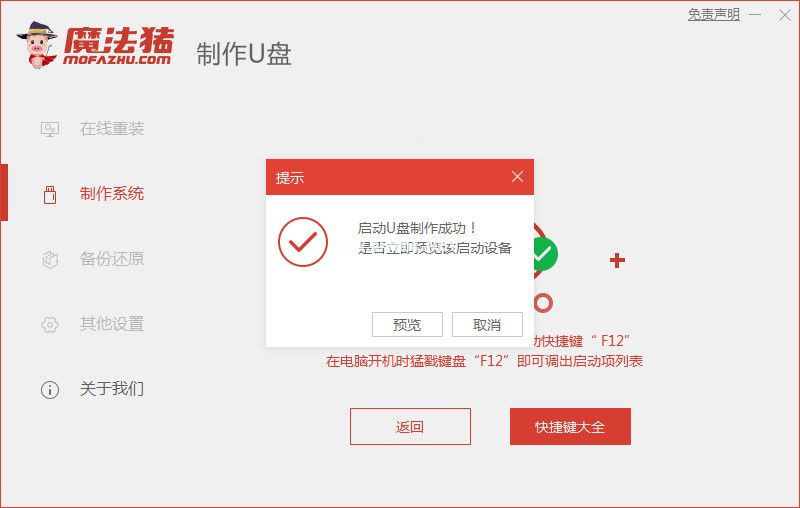 5、等待U盤啟動盤制作完成,即可進行系統(tǒng)的重裝。