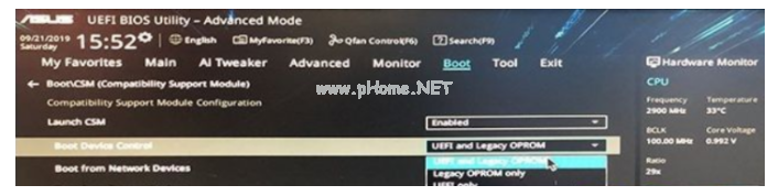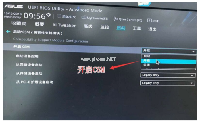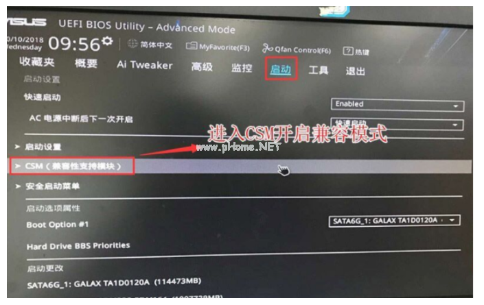 2、在Boot選項(xiàng)卡中,找到CSM兼容模塊,選擇Disabled(關(guān)閉),把CSM由Disabled改成Enabled,開(kāi)啟兼容模式。