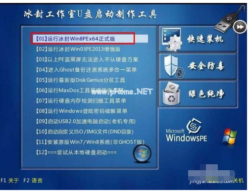 步驟五:1、用U盤啟動(dòng)快速安裝系統(tǒng)1:選擇運(yùn)行冰封WIN8PE X64。
