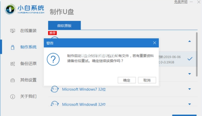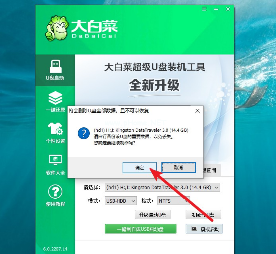 3、軟件需要格式化u盤,確定備份好u盤重要資料后,選擇確定格式化u盤。