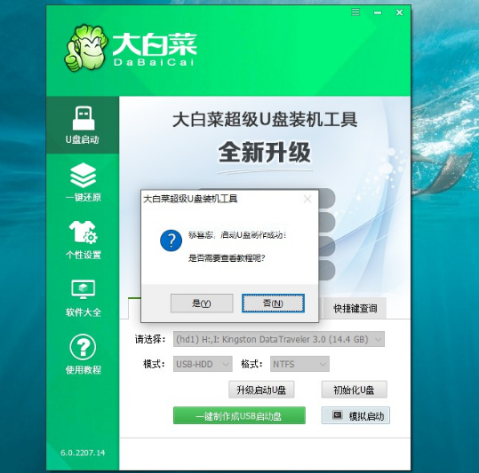 4.頁面提示大白菜u盤啟動盤制作完成提示后,根據(jù)需要點擊操作即可。