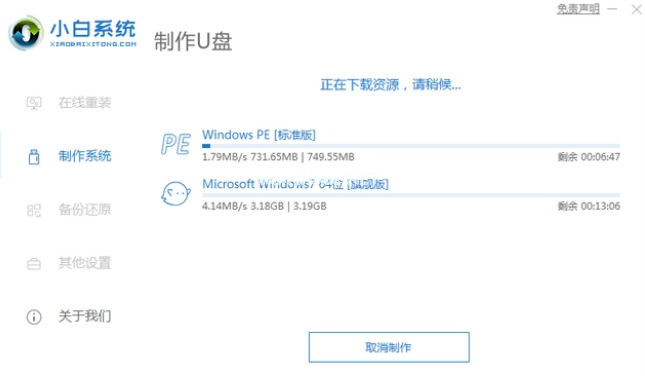 4、開始自動下載系統(tǒng)和備份的資料導入到U盤里面,大家耐心等待即可。