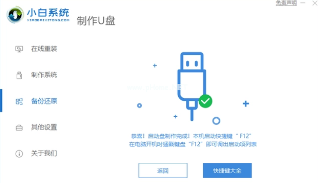 5、完成資源和驅動下載后,自動進行制作完成后,可先預覽下電腦啟動快捷鍵,至此,小白啟動u盤制作完成,可以用它來進行電腦的修復或者重裝系統(tǒng)等操作。