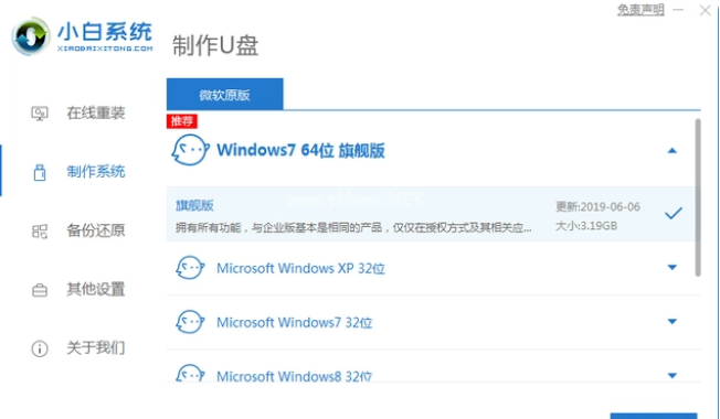 2、選擇需要安裝的操作系統(tǒng),點擊開始制作。