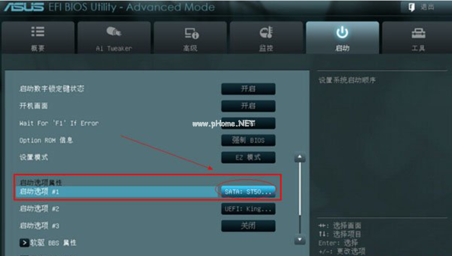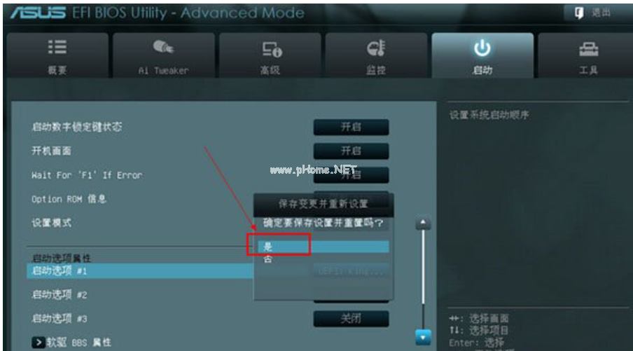 5、再用鍵盤上下方向鍵選擇“啟動選項(xiàng)#1”,注意此處它是硬盤為第一啟動項(xiàng),按回車鍵確認(rèn)執(zhí)行。