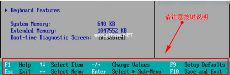 1.進(jìn)入bios界面設(shè)置,記住底部快捷鍵操作。
