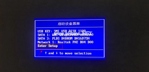 2、在啟動(dòng)設(shè)備菜單窗口中,選擇“ENTER Setup”進(jìn)行BIOS設(shè)置。