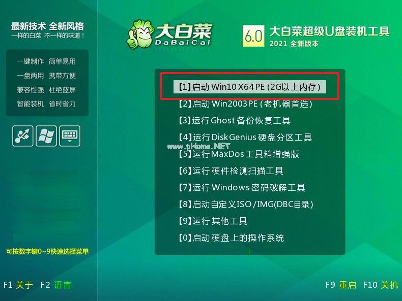 確定u盤啟動盤制作成功之后,就可以將它插入電腦,按下主機重啟按鈕。等待電腦出現(xiàn)開機畫面時,快速按下U盤啟動快捷鍵,設(shè)置U盤啟動即可進入winpe界面。最后,選中【1】Win10X64PE(2G以上內(nèi)存),回車進入winpe桌面。