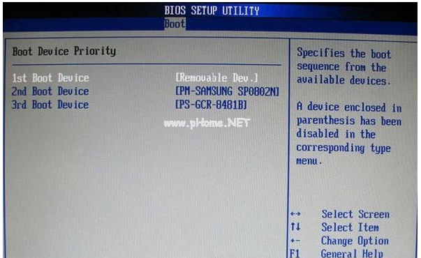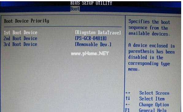 2.選擇啟動優(yōu)先級設(shè)備選擇(Boot Device Priority)在第一啟動設(shè)備(1st Boot Device)里選擇U盤。