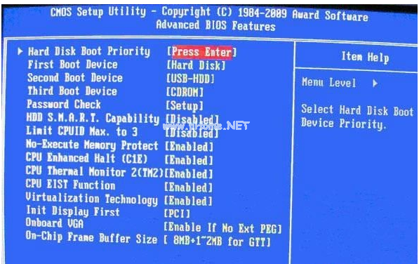 2.也是選擇高級BIOS設(shè)置(Advanced BIOS Features)界面,首先選擇硬盤啟動優(yōu)先級:Hard Disk Boot Priority。