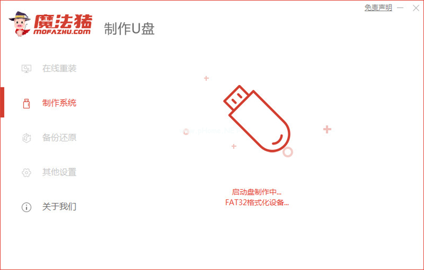 1、下載魔法豬軟件后,在電腦上插入u盤,點擊開始制作啟動盤。