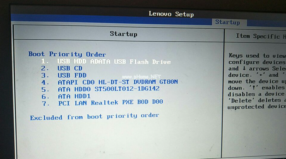 4、通過(guò)下鍵將光標(biāo)移動(dòng)至"USB HDD"開(kāi)頭的那個(gè)項(xiàng)目名稱(chēng)上(有的BIOS也叫removeble device),小編這里是以聯(lián)想BIOS為例,其他品牌也都差不多。