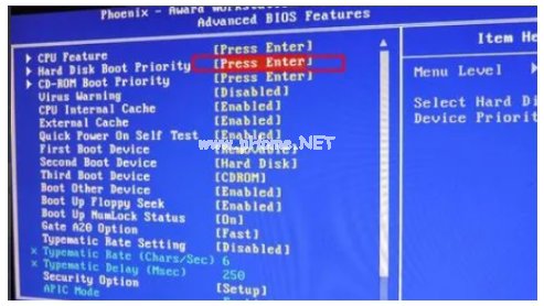 4、按上下方向鍵選擇“Hard Disk Boot Priority”,回車