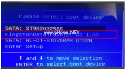 2、彈出啟動(dòng)菜單,選擇第二項(xiàng),即“KingstonDataTraveler G2 1.00”,回車