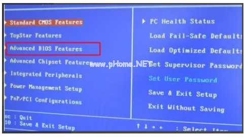 3、BIOS設(shè)置進(jìn)入U(xiǎn)盤啟動(dòng),選擇“Advanced BIOS Features”,回車