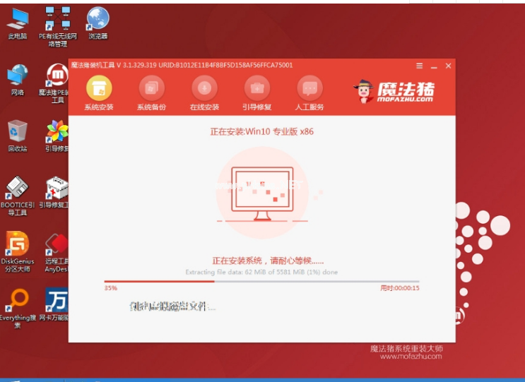 3、重啟電腦進入PE系統(tǒng)進行安裝。