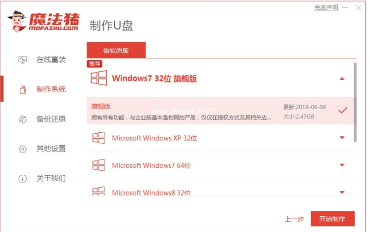 2.選擇需要安裝的系統(tǒng),點擊開始制作。