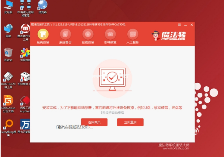 3、系統(tǒng)安裝完成后,點擊立即重啟。